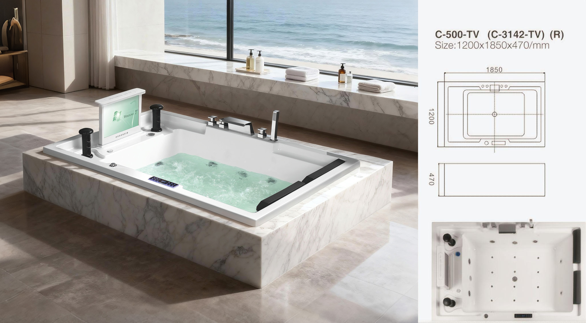 1. Drop In bathtub with TV, Acrylic massage bathtub