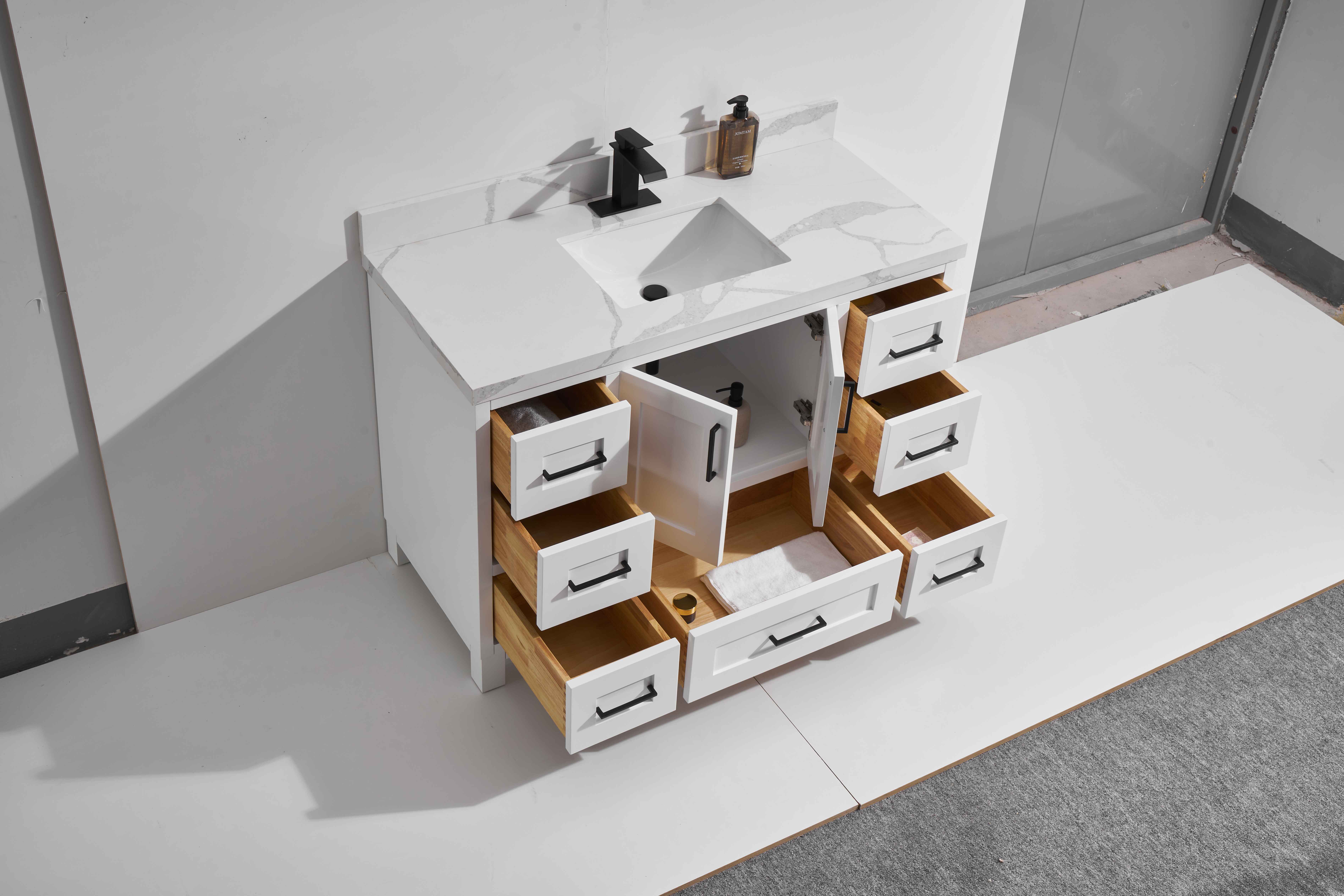 Palermo 48” Freestanding Vanity with White and Calacatte White Counter top with Single Sink