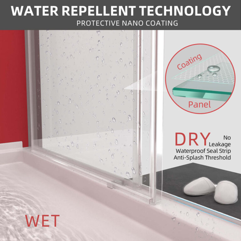 The Surface of This Glass Shower Door is Covered by Protective Nano Coating,Repeling Shower Water and Contaminates, Protecting Glass Shower Door Against Stain, and the Glasses will Maintain High Glossy, Bright, Tranparency and Clean as New Even Long-lasting Useage.